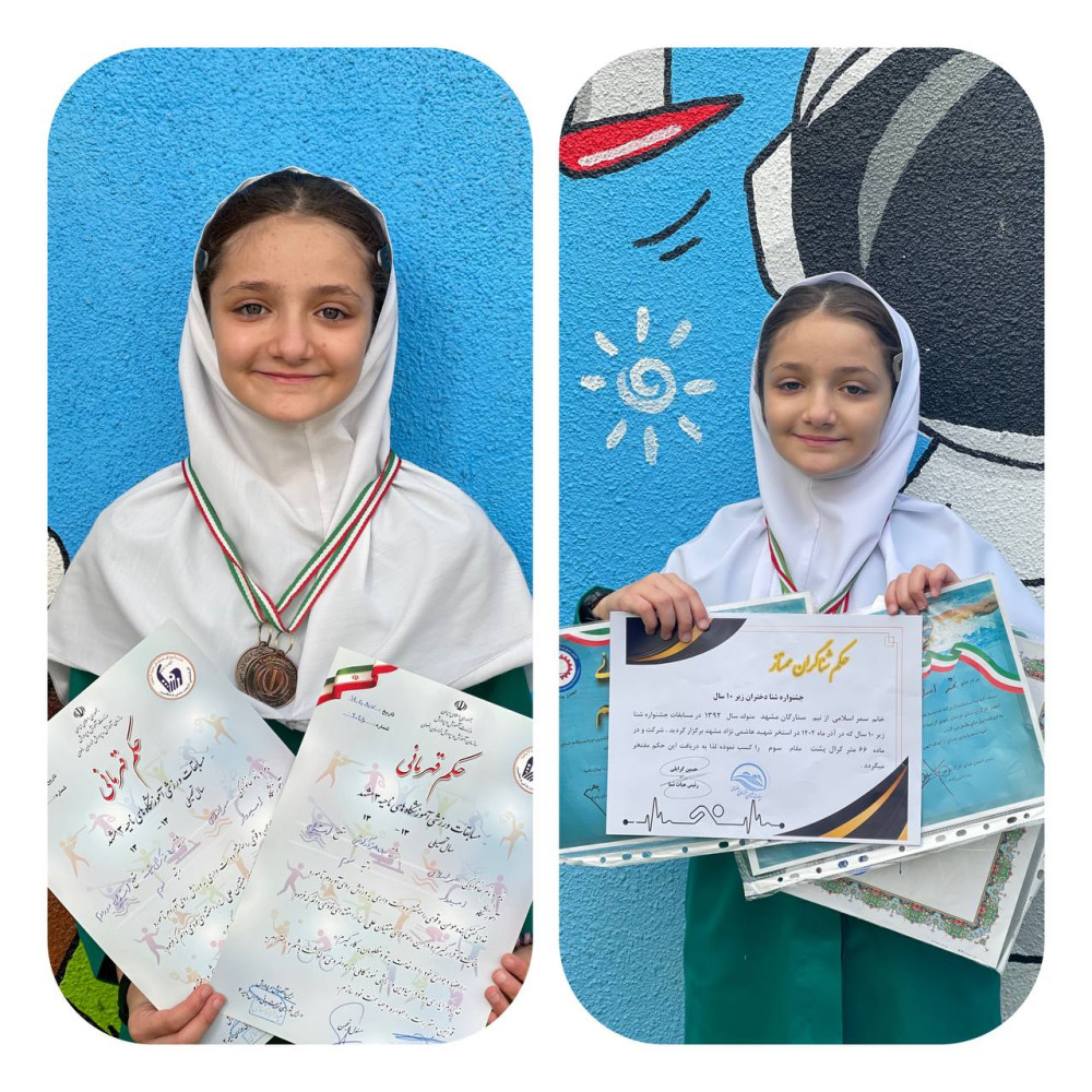 کسب مقام سوم مسابقات شنا 50 متر کرال پشت