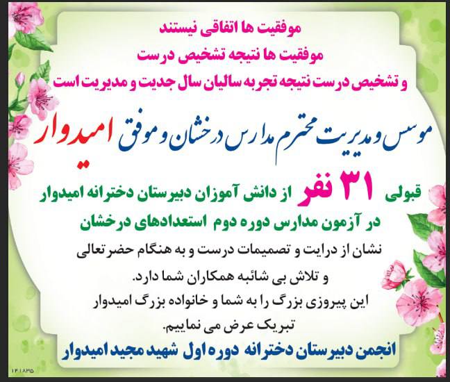 قبولی دانش آموزان در آزمون مدارس دوره دوم استعداد درخشان