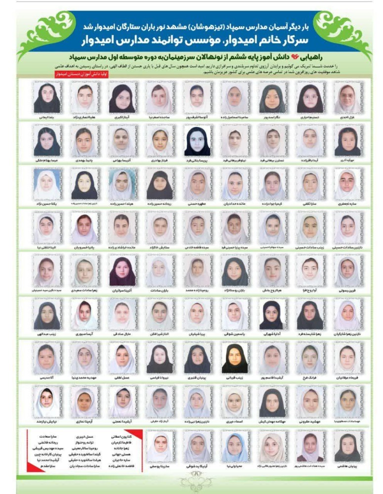 قبولی های تیزهوشان مدرسه شهید امیدوار