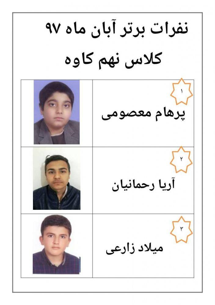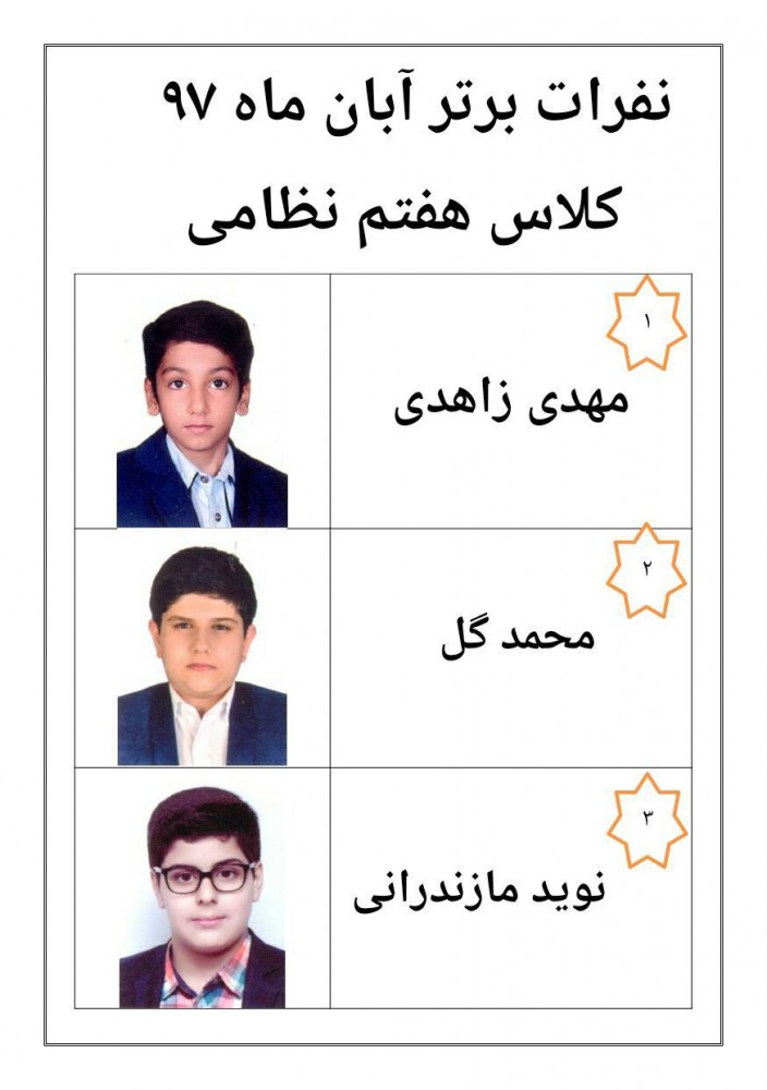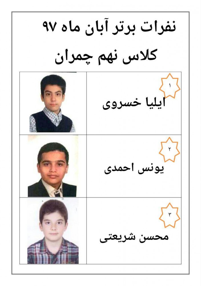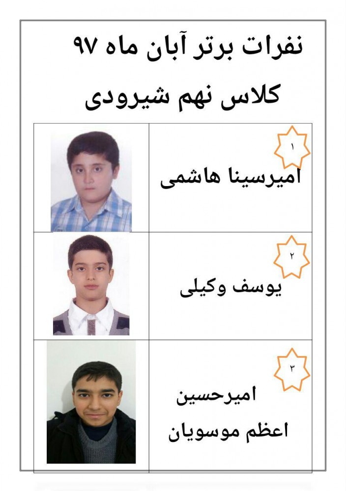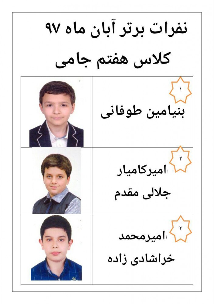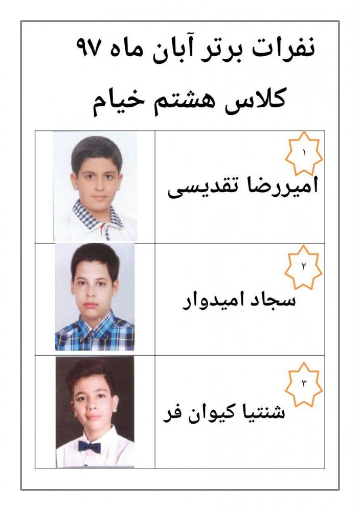 در آذر ماه 97 اولین مرحله آزمون های درون مدرسه ای امیدوار برگزار گردید. در این آزمون کلیه دانش آموزان آموزشگاه حضور داشتند و طراح سوالات دبیران برجسته دبیرستان بودند. پس از بررسی پاسخ نامه ها، نتایج اعلام گردید و نفرات برتر هر کلاس مشخص گردید. سپس اسامی برترین ها از طریق کانال مدرسه به اولیاء اطلاع رسانی شد.