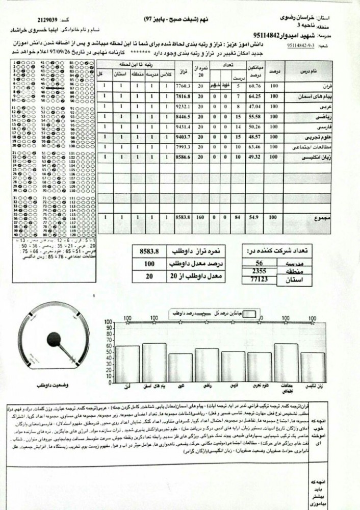 این موفقیت ارزشمند را به این دانش آموز توانمند و خانواده بزرگ امیدوار تبریک عرض می کنیم.
