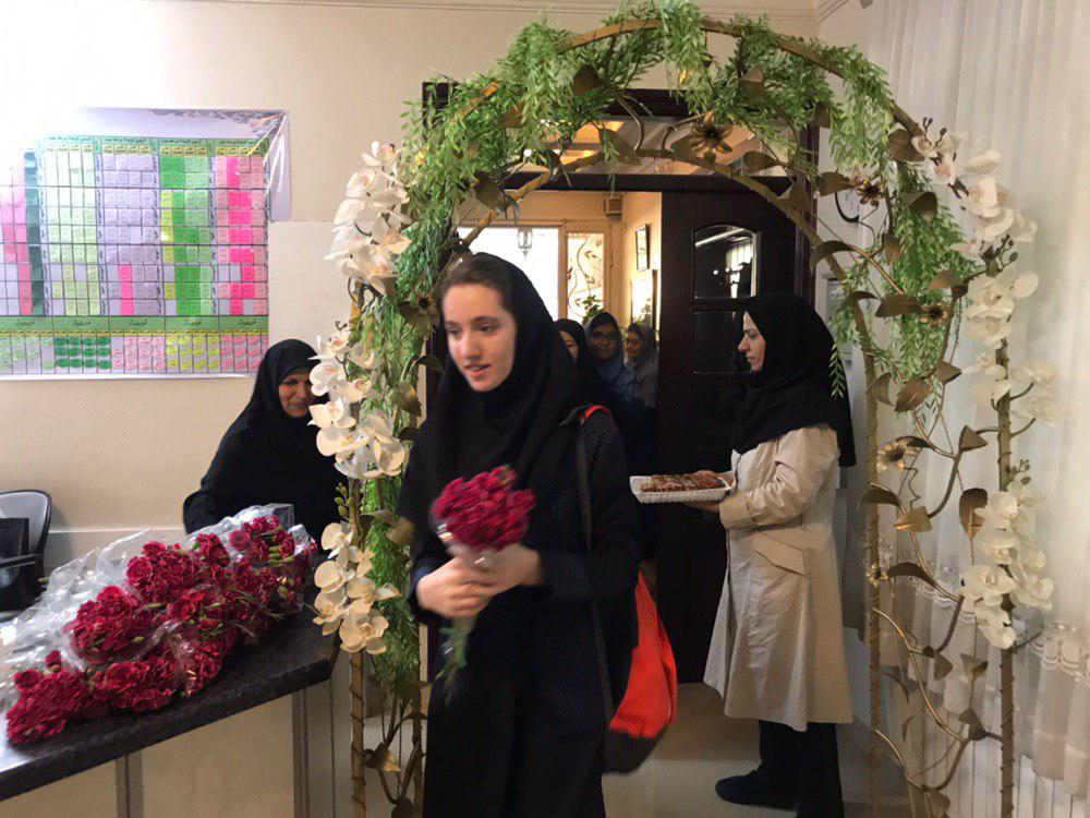 سپس دانش آموزان با پذیرایی شیرینی و گل و اهداء راهی کلاس درس شدند.