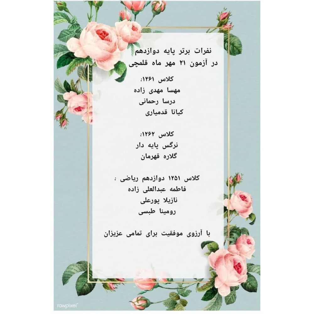 نفرات برتر پایه های دهم و یازدهم در آزمون قلمچی 21 مهر ماه 1402