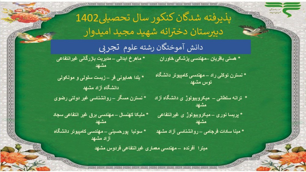 اسامی قبول شدگان کنکور 1401 - 1402