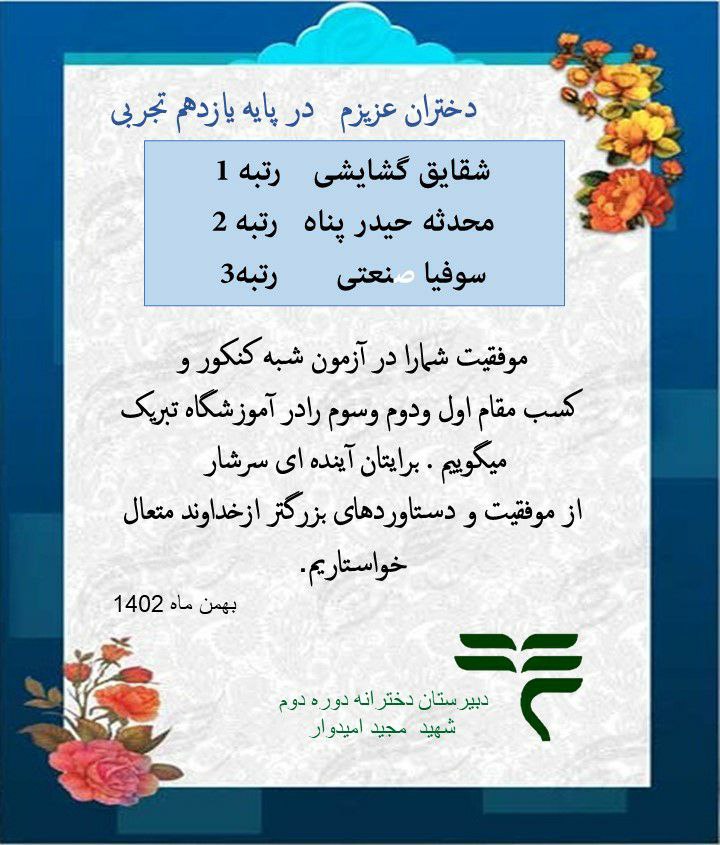 دبیرستان دخترانه شهید مجید امیدوار دوره دوم