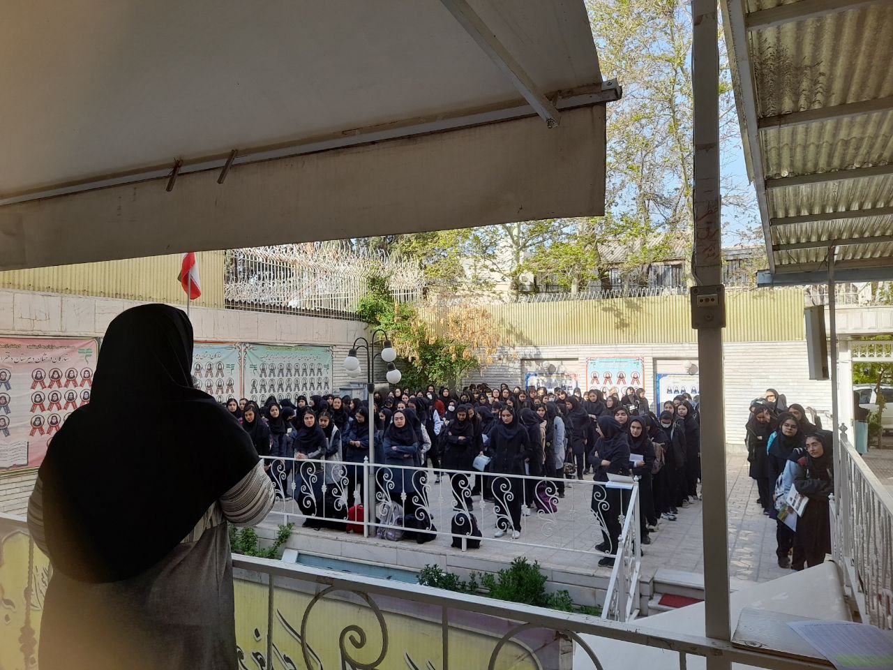 برگزاری صبحگاه در هوای بهاری اولین روز هفته