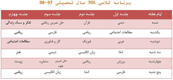 برنامه کلاسی 705 سال تحصیلی 97-98